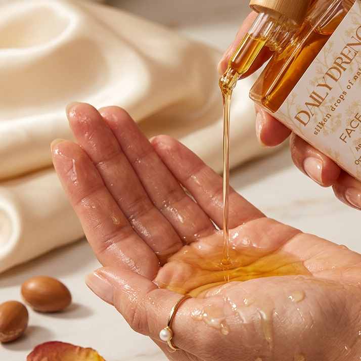 Apply 3-5 drops to clean, slightly damp skin. Press gently into the face, neck, and body.